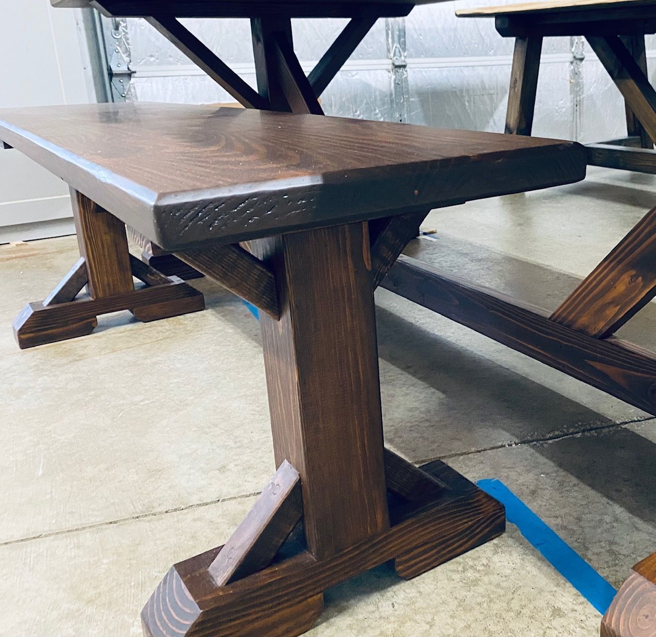 Turtle Builds offers chairs and benches. Chairs range from $80 - $120 each and wood benches are $225 - $300